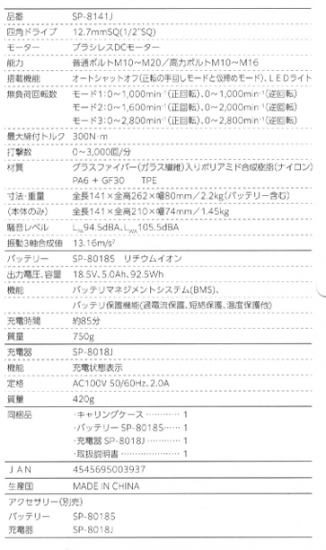 ¿·À½ÉÊ¡ªVESSEL¡Ê¥Ù¥Ã¥»¥ë¡Ë½¼Åż°¥¤¥ó¥Ñ¥¯¥È¥ì¥ó¥Á SP-8141J 18.5V ºÇÂçÄùÉեȥ륯300N¡¦m LED¥é¥¤¥È ½ÅÎÌ2.2kg